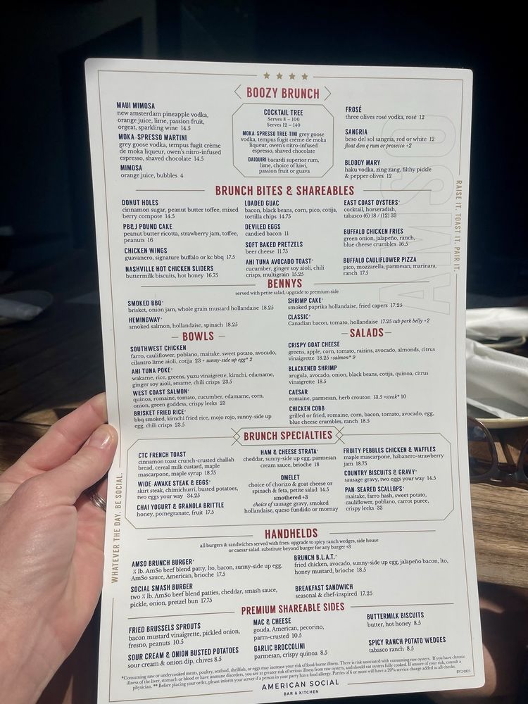 American Social in Fort Lauderdale offers a diverse menu featuring delightful salads and bowls like the Ahi Tuna Poke and Blackened Shrimp. Their shareable plates include Ancho Chicken Quesadilla and Buffalo Chicken Fries, perfect for a group outing. Bubbles & Bites pair crispy Chicken Tenders with Moet & Chandon Champagne, a luxurious treat. Customers have raved about the exceptional service, with mentions of attentive servers like Jojo and Tabitha. The atmosphere is trendy with a lively vibe, making it ideal for a weekend hangout. The overall experience at American Social is praised for its great food, extensive cocktail menu, and top-notch service. Don't miss out on the delicious offerings and vibrant ambiance at this hotspot on East Las Olas Boulevard in Fort Lauderdale.